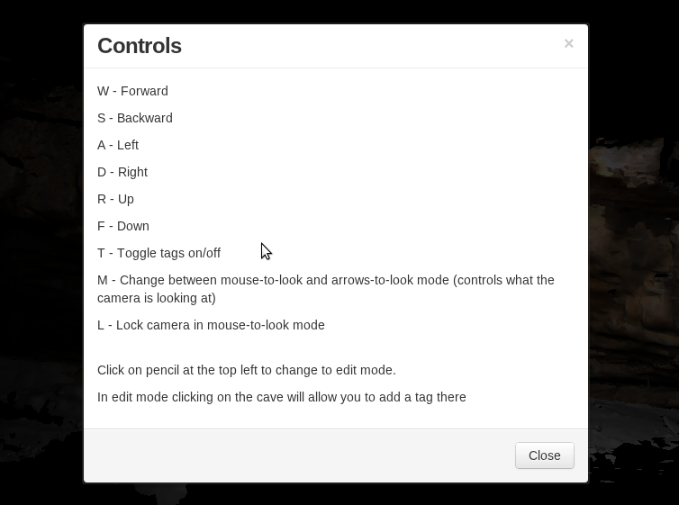 High resolution models of the caves acquired from the Geomatics Department at the University of Cape Town are used to provide the environment that the user wishes to explore. These models are stored on the server and sent to the browser of the user where they are rendered using WebGL. In order to save on data transfer costs the size and resolution of the model is greatly reduced before it is sent. This is done because the models are originally far more detailed than is necessary for this application and the lower resolution models are still very detailed.