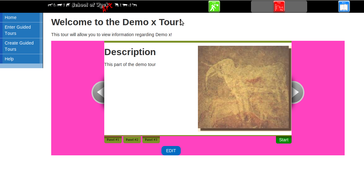 Once a user clicks on a tour, the edit button is also displayed. This allows users, who are viewing the tour, to edit the contents of the tour such as background colour, title and images.