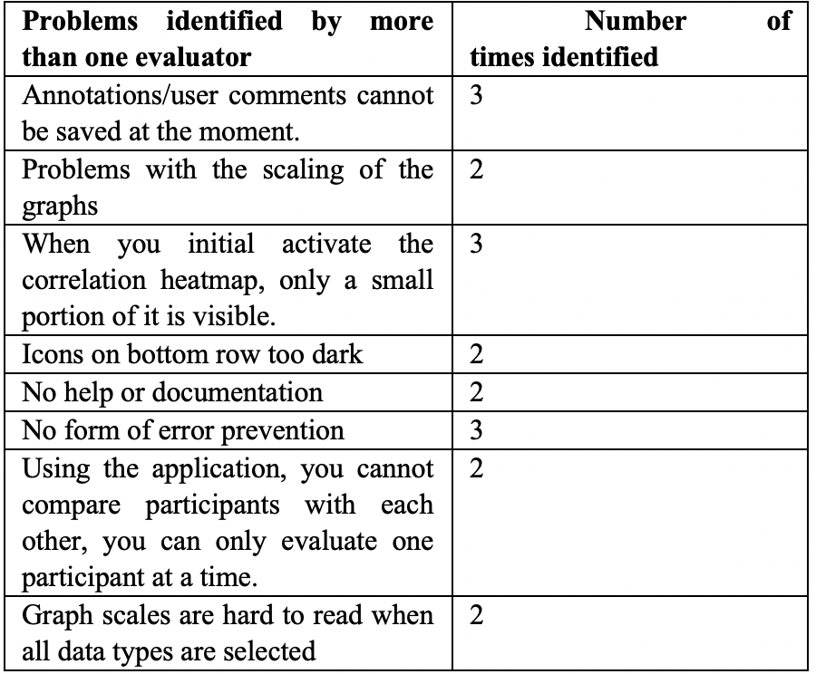 The application has an average usability rating of 3.33 and the heuristic with the most critical problems was error prevention and the heuristic with the most problems was flexibility and efficiency of use.