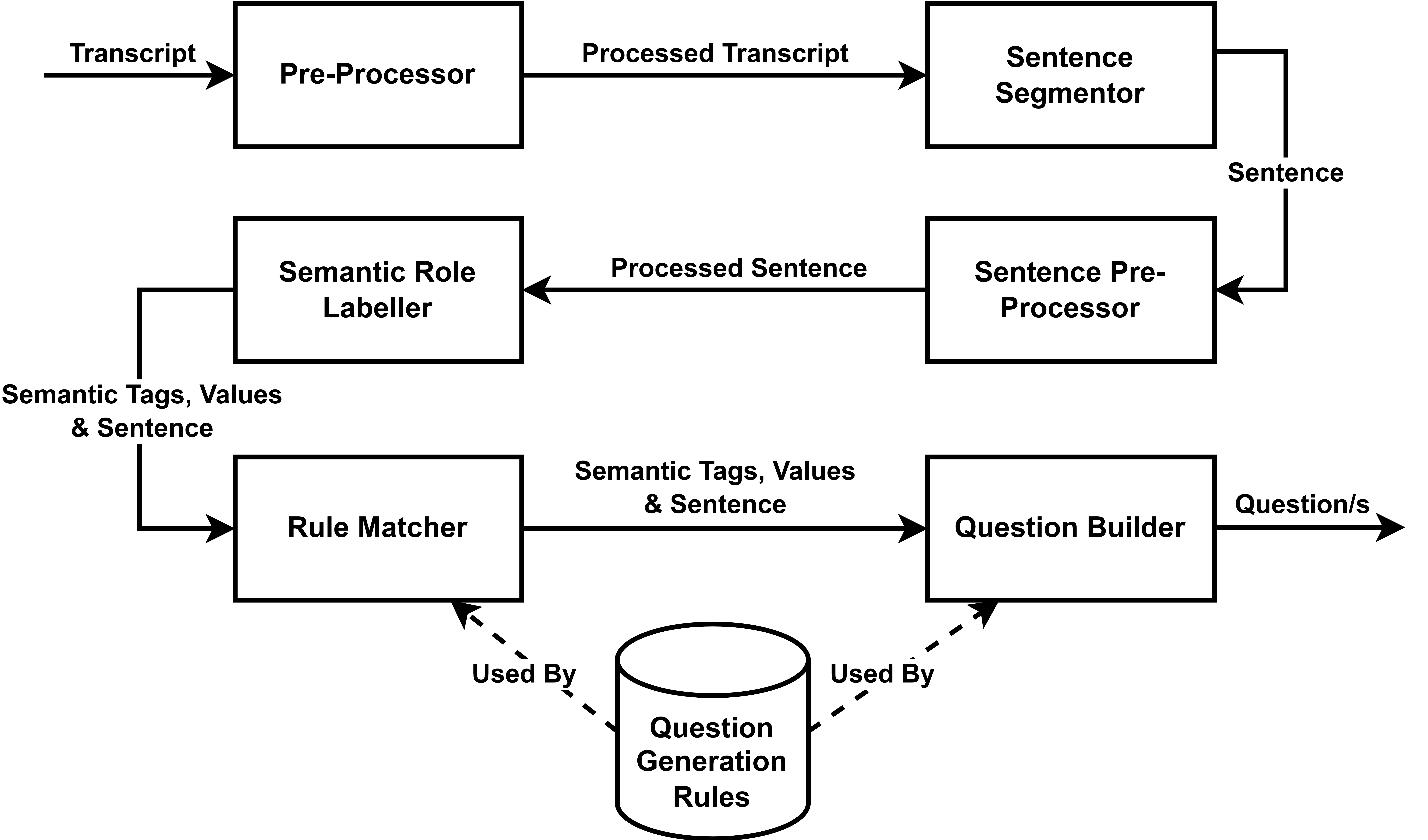 This study focussed on developing two systems. A Rule-Based Semantic and a Template-Based Question Generation (QG) System. The main differentiating feature of these two systems is how their rules and templates are devised. The semantic system makes used of 8 manually created rules, while the template-based system combines semantic role labelling (SRL) with coded logic to automatically extract templates from sample input questions. The two systems are then compared in terms of question quality and dataset coverage. The template-based system is built with the goal to maintain the same question quality produced by the manually created rules, while increasing the coverage compared to the semantic QG system. This aims to alleviate the tedious work assosiated with creating templates. In analysing the performance of the systems no statistical significant difference in peformance was found. This means the template-based system achieved its aim of matching the output quality of manually created rules. In addition, the template-based system was found to possess far greater coverage, due to its larger number of templates/rules.